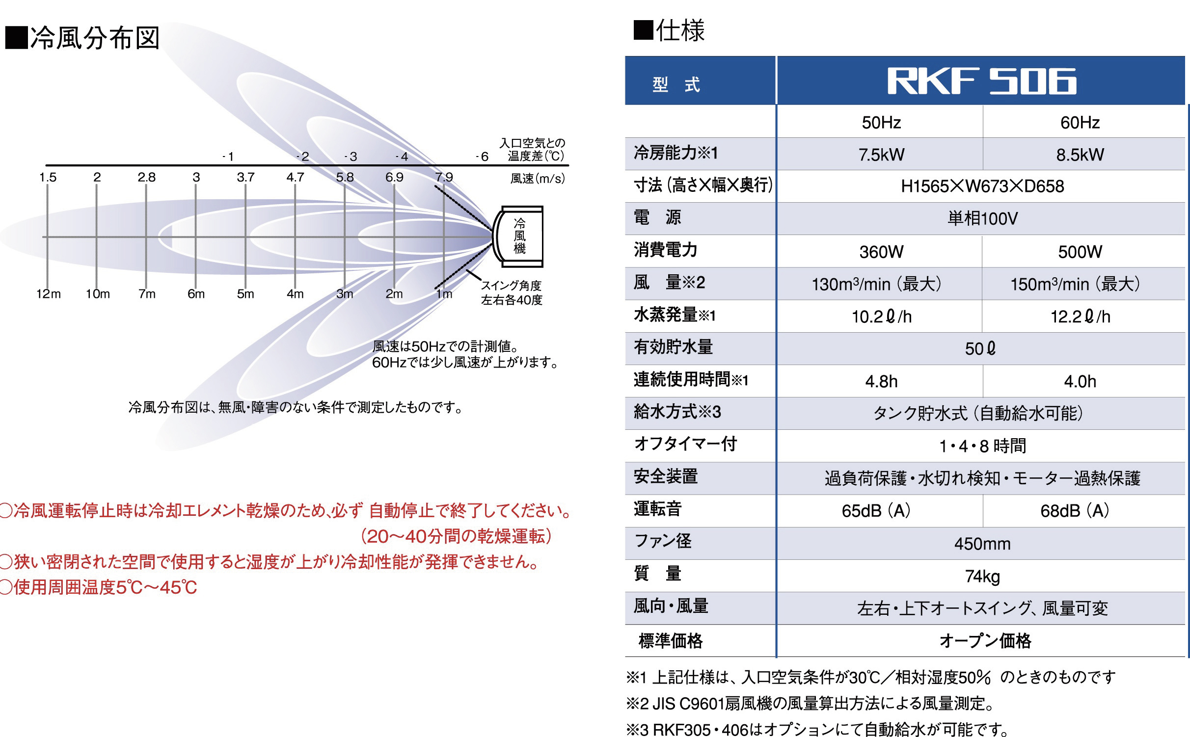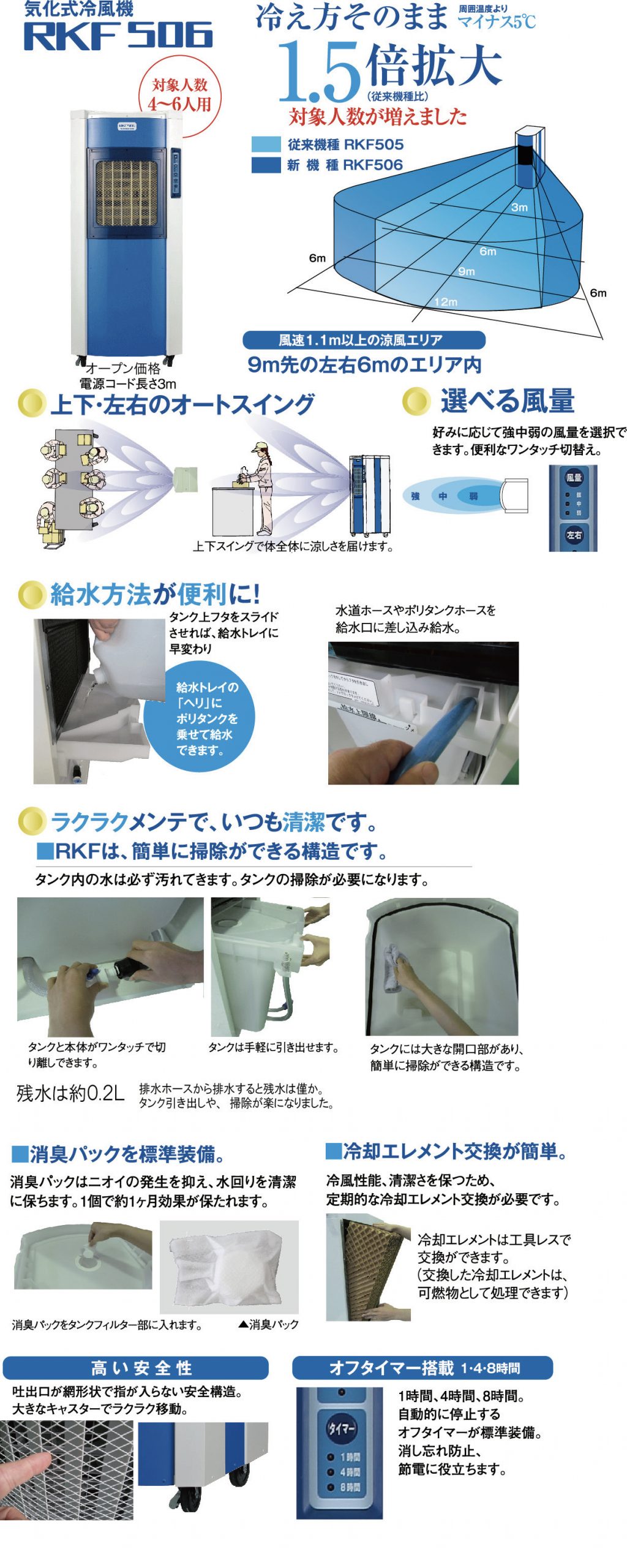 2m先まで風が届く4~6人向けの冷風機です。