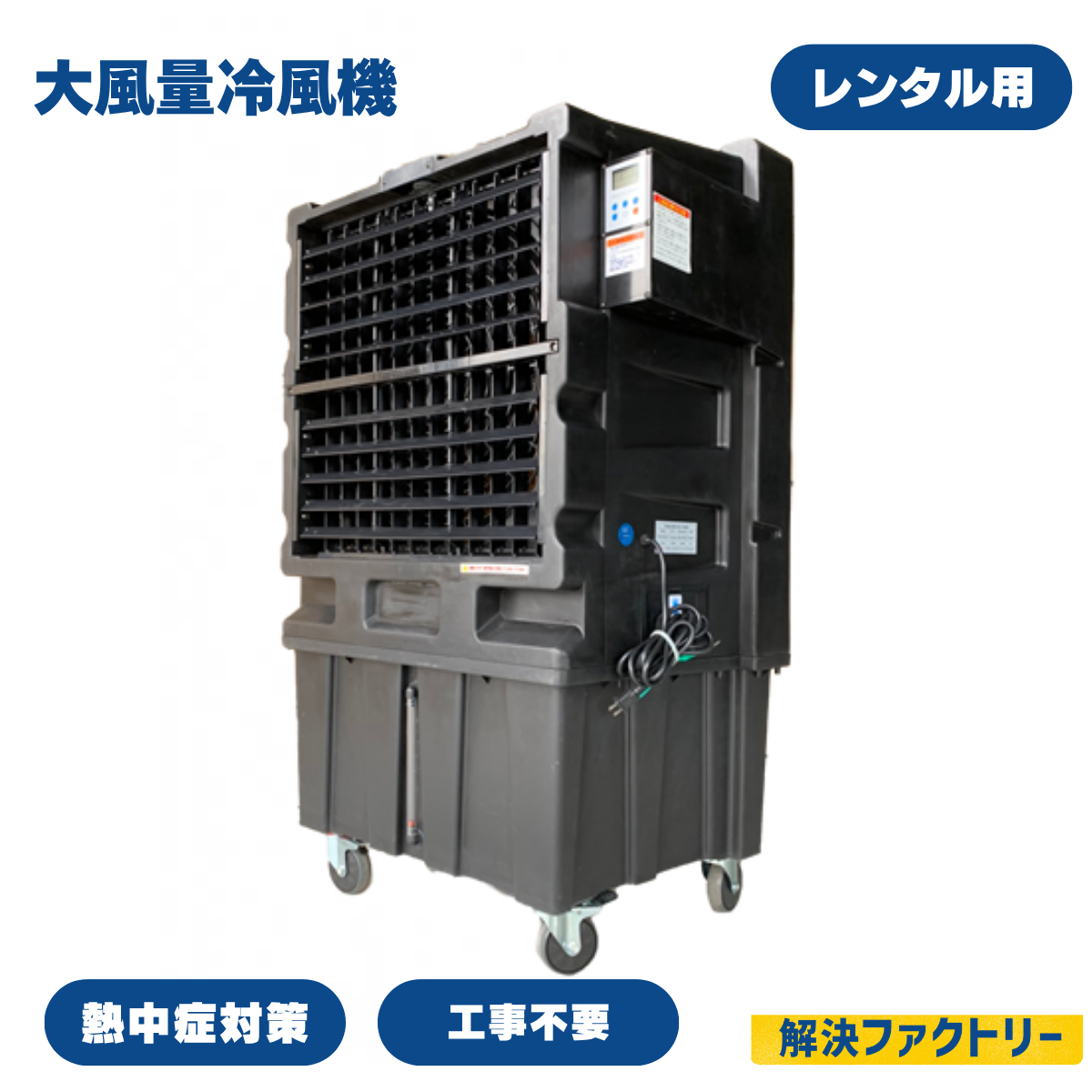 100Vコンセントと水があればどこでも使える気化式冷風機です。雨がかからないようにすれば、屋外でも使えます。